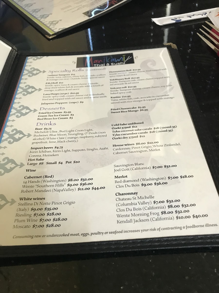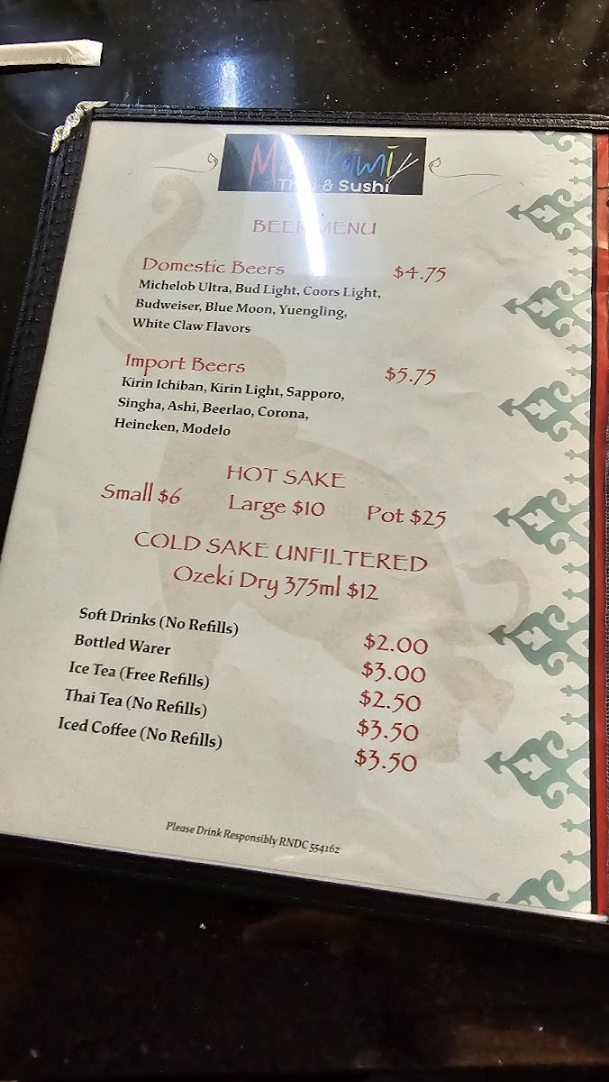 The drinks menu includes simple, refreshing choices like iced tea, Thai tea, and soft drinks, which pair well with the flavors of both the Thai and sushi dishes. The atmosphere here supports a cozy, intimate dining experience, where the food feels thoughtfully prepared and satisfying without fuss.